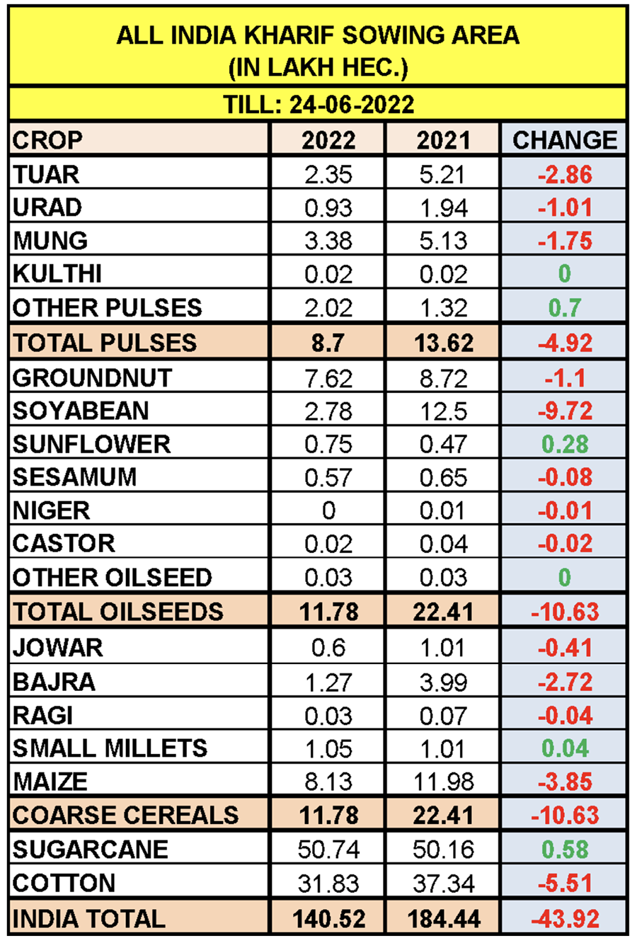 Pulses sowing is down 38.65% from last year.