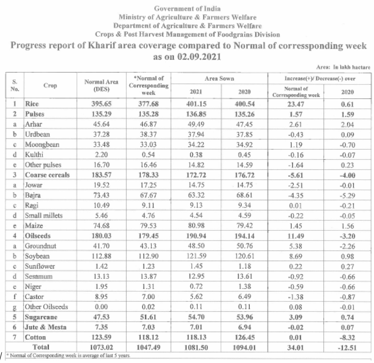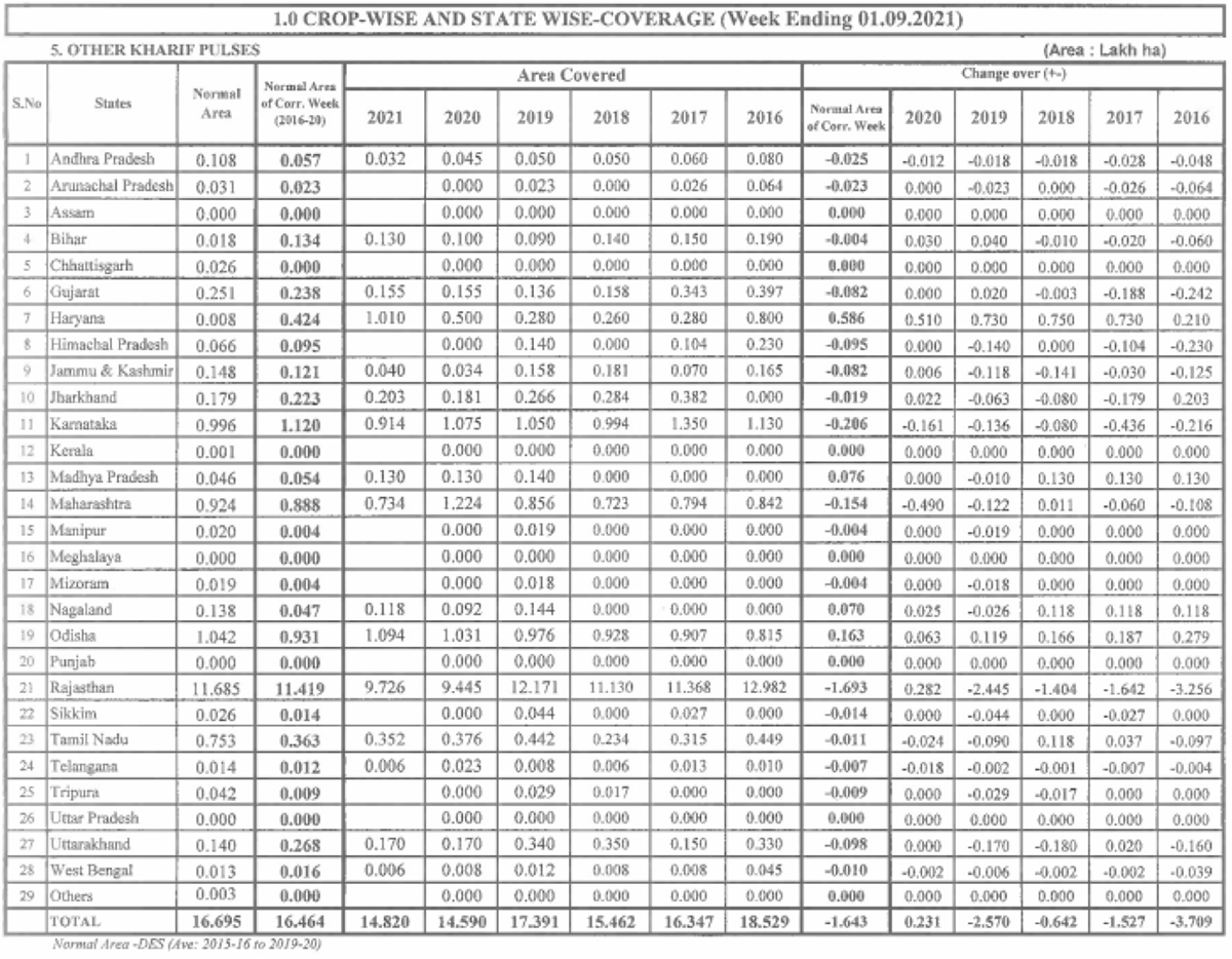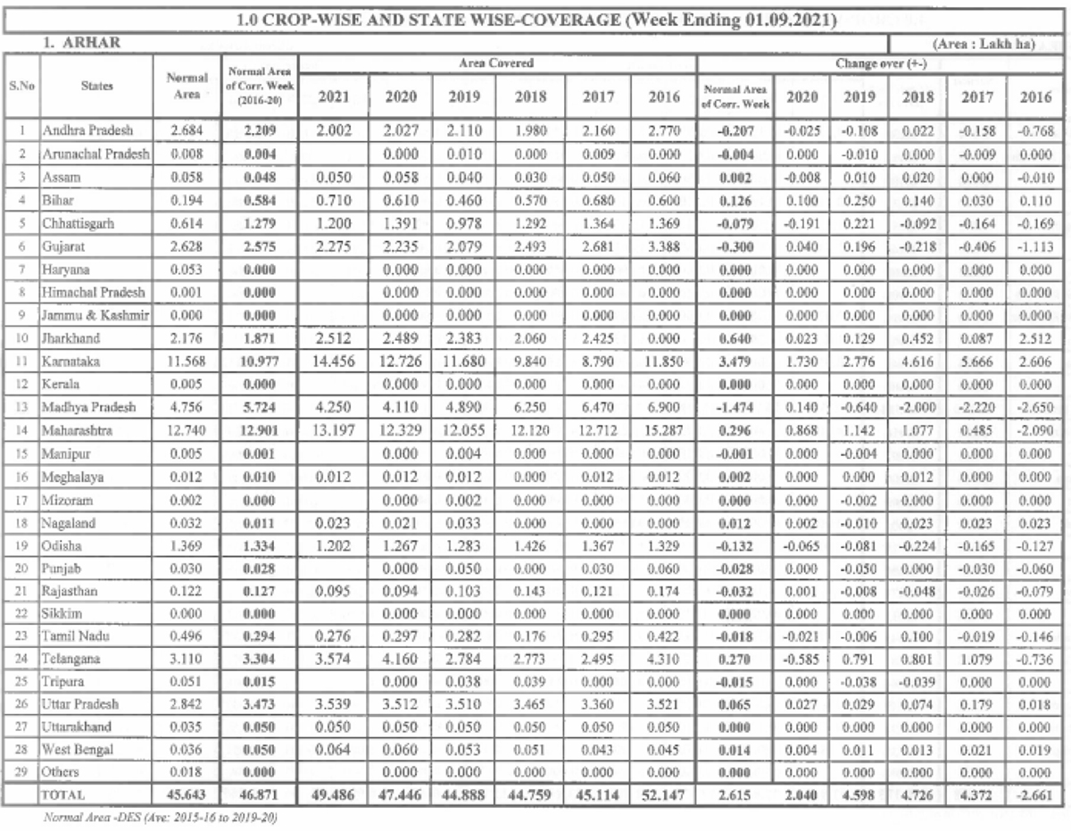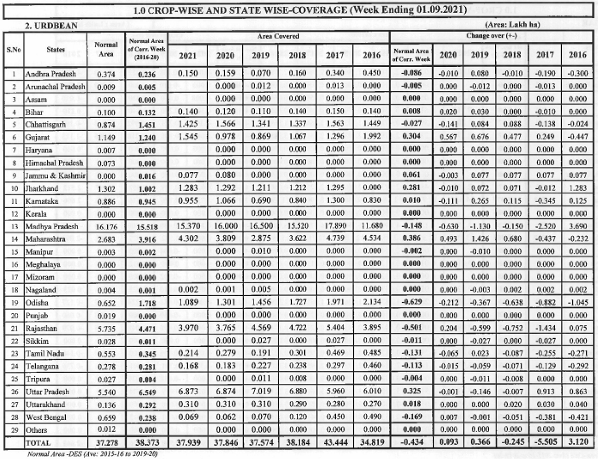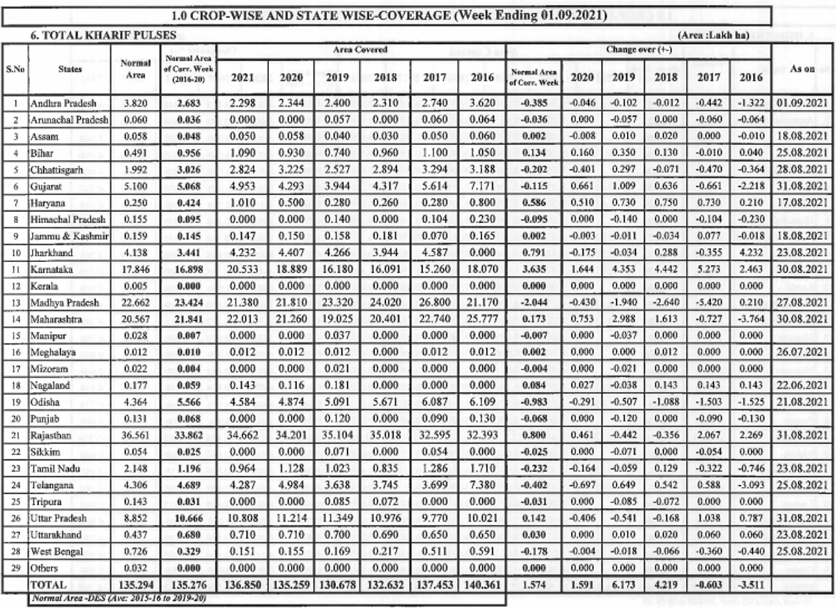 According to the data received, the retail price of chana dal decreased from Rs. 75.09 to Rs. 74.64 per kg in August as compared to July, tuar dal from Rs. 105.26 to Rs. 104.06 per kg, urad dal from Rs. 107.13 to Rs. 105.12 per kg and moong dal from Rs. 102.33 to Rs 100.77 per kg while the retail price of masoor dal increased from Rs. 87.55 to Rs. 89.76 per kg.