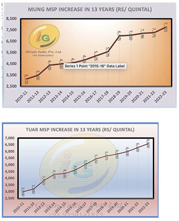 In the Kharif season, tuar, moong and urad are cultivated on a large scale. According to trade analysts, prices have been under pressure in recent months due to the liberal import policy leading to increased supply in the domestic market. Indeed, imports of tuar and urad are increasing.