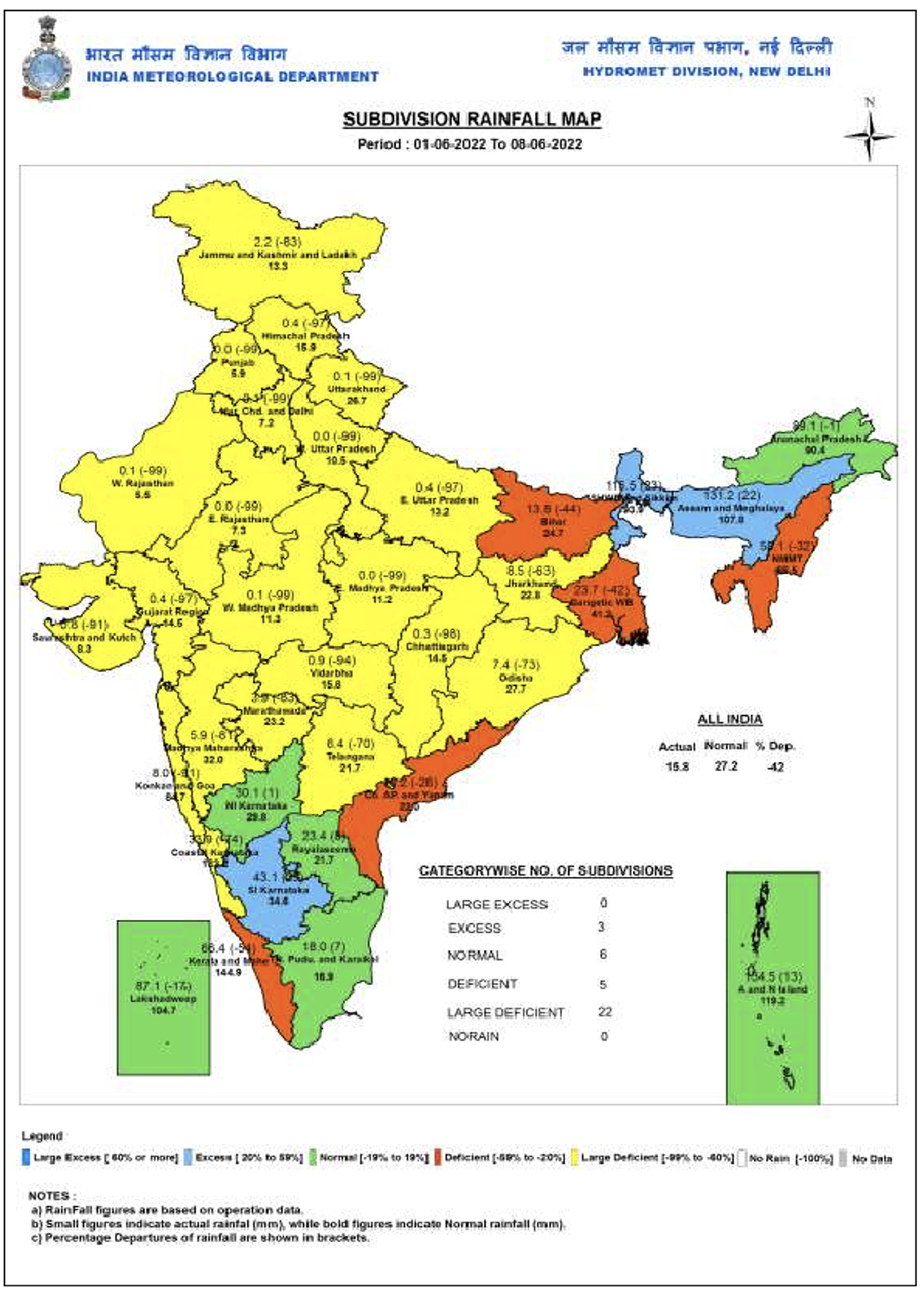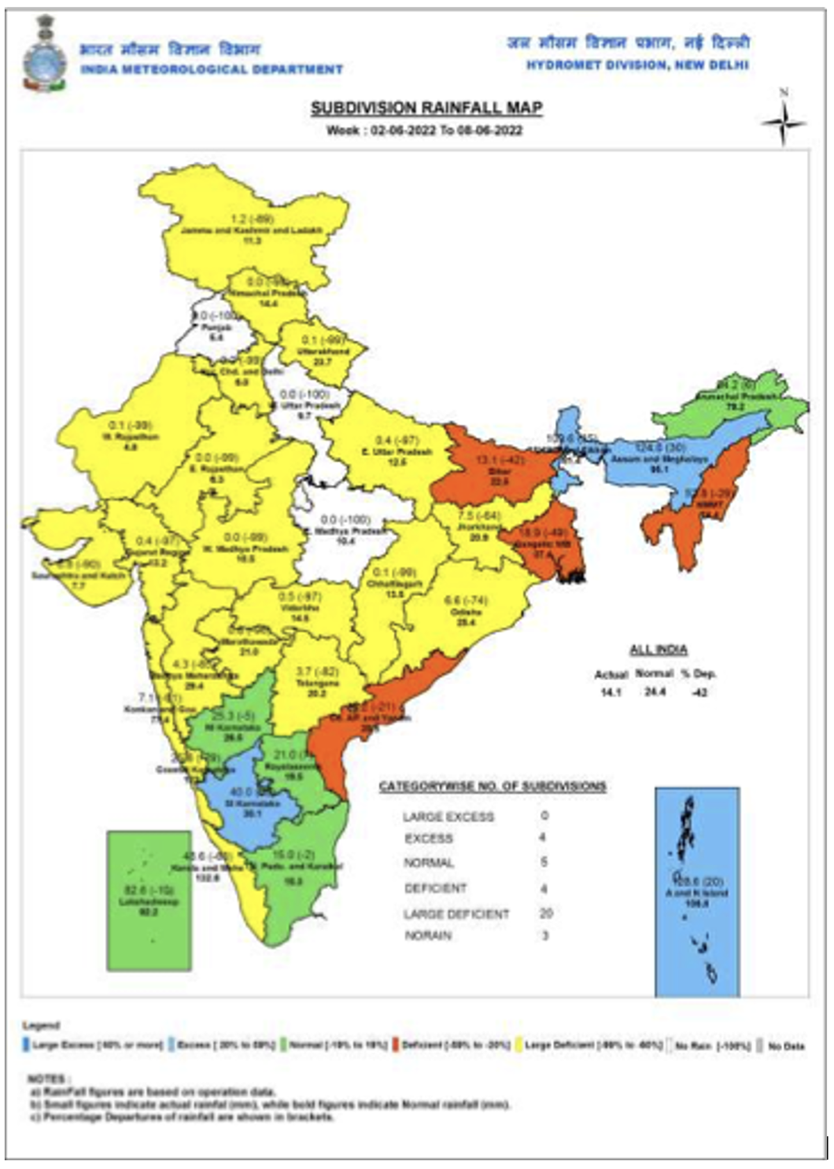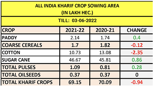 New Delhi. Monsoon season has begun - the first rains arrived in Kerala on May 29 but are progressing slowly. Meanwhile, sowing of Kharif crops has started, the speed of which will increase as the monsoon progresses in the central and western parts of the country. Good progress is being made in the cultivation of paddy and pulses and the area of oilseeds is almost equal to last year. Union Agriculture Ministry data as of June 3 showed that the total sown area of Kharif crops had reached 6.91 million hectares, just slightly below the area sown at the same time last year. The sown area of pulses has increased from 80,000 hectares to 100,000 hectares. The area of coarse cereals decreased from 0.18 million hectares to 0.17 million hectares and cotton from 1.3 million hectares to 1.07 million hectares.