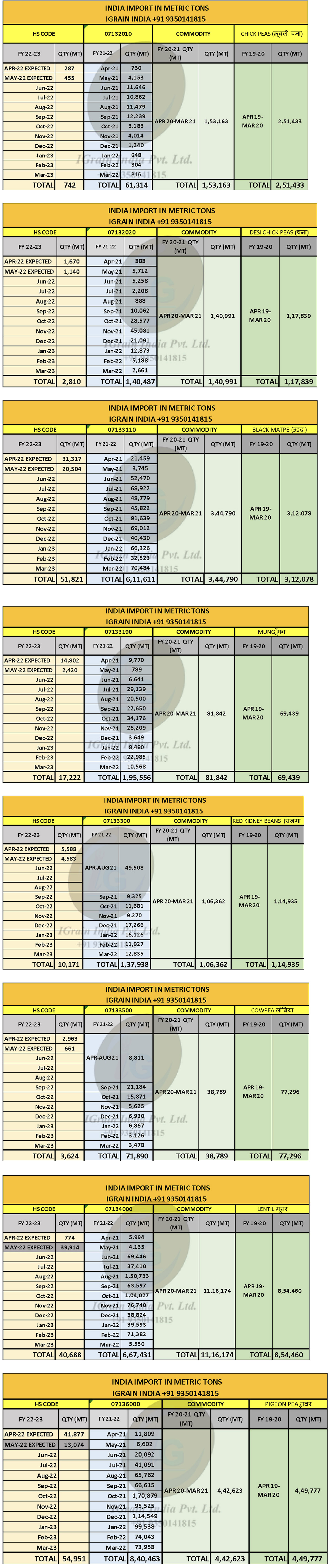 Canada also shipped 23,458 tons of chickpeas and about 0.184 million tons of peas in April 2022.