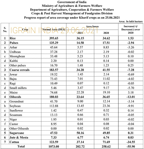 Government procurement of rabi season moong was slightly better than that of lentils. The MSP is Rs. 7,196 per quintal. The government procured a total of 4,528 MT of rabi season moong, including 4,419 MT from Tamil Nadu and 109 MT from Orissa. Mung procurement from Madhya Pradesh started on June 15.