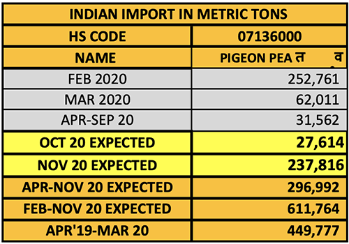 According to the available data, during the first eight months of the current financial year (April-November), India imported 2.97 lakh MT of pigeon peas. In FY 2019/20, 4.50 lakh MT of tuar were imported.