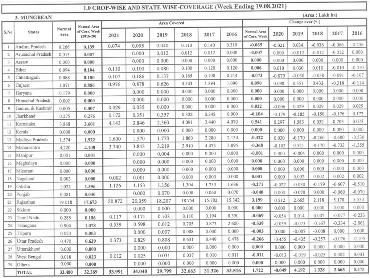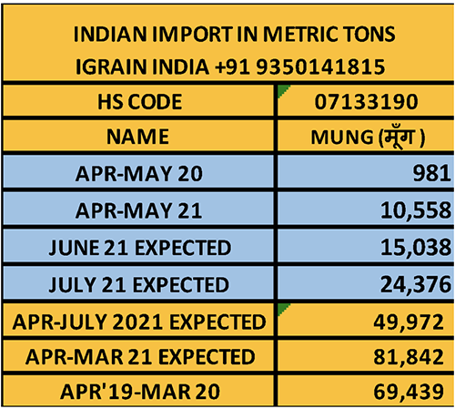 As far as moong is concerned, the total import is estimated at 49,972 tonnes in the four months of April-July 2021, which includes 10,558 tonnes in April-May, 15,038 tonnes in June and 24,376 tonnes in July. Earlier in April-May 2020, 981 tonnes of moong were imported. In the entire period (April-March) of the financial year 2020-21, 81,842 tonnes were imported and a total of 69,439 tonnes of moong were imported in the financial year 2019-20. Most of the imports came from Myanmar.